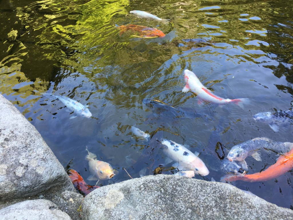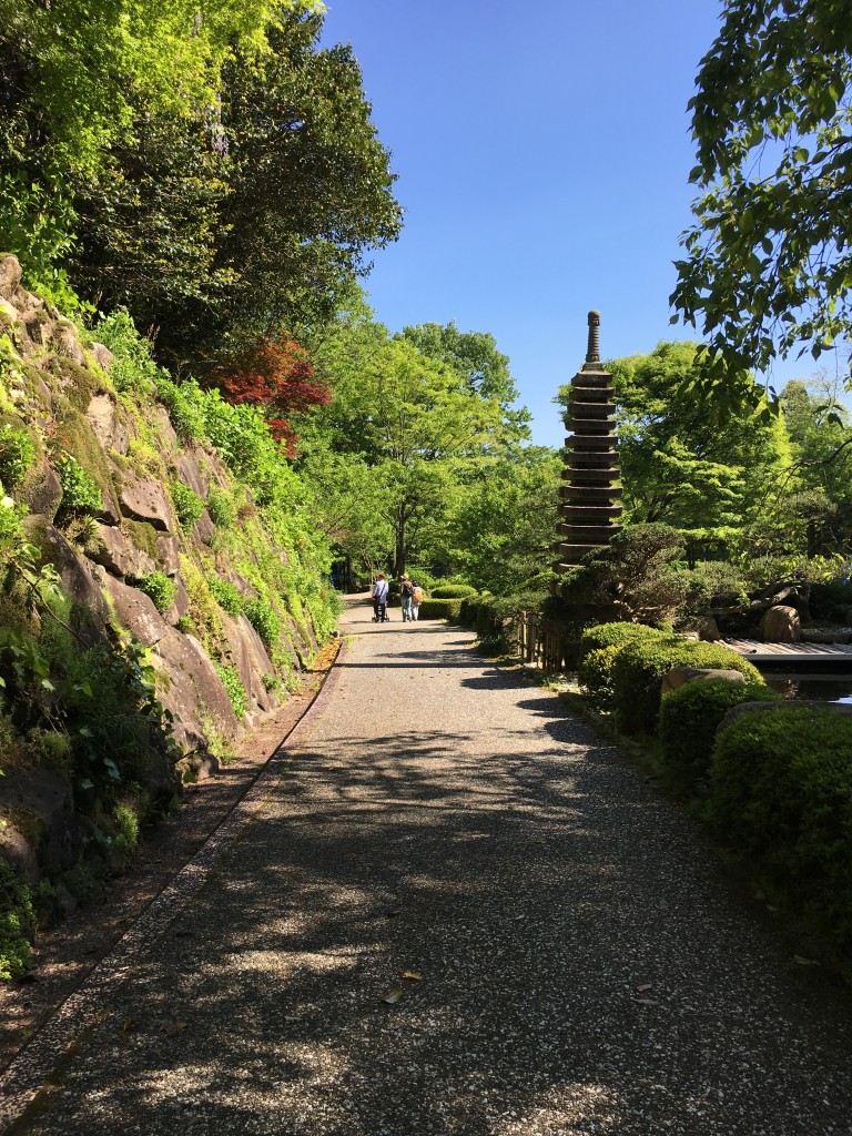 途中、日本庭園もあり小さな滝から流れる水の音を聞きつつ、見上げると木々の隙間から見える空の青。